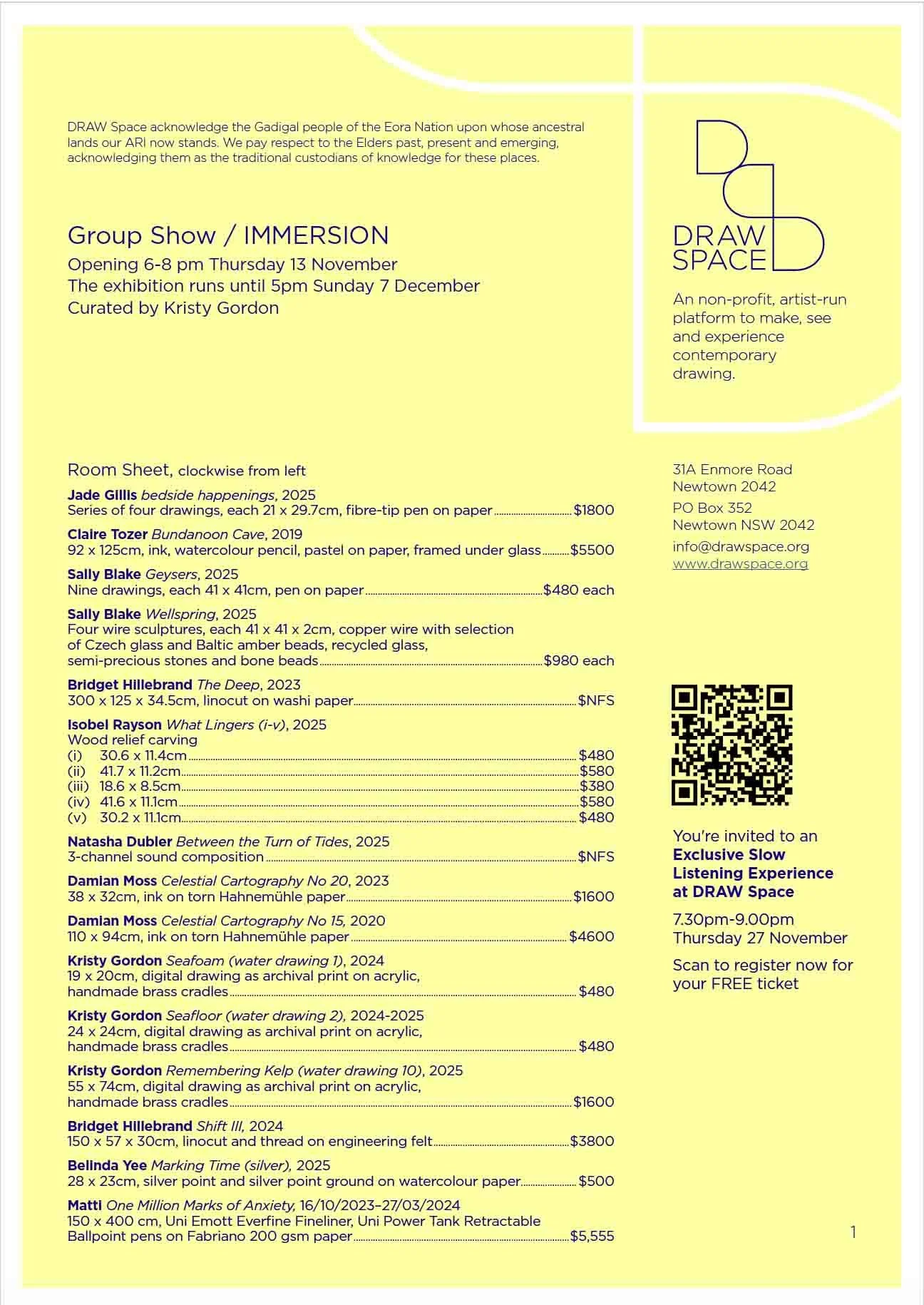 Click here to download a pdf copy of the IMMERSION exhibition roomsheet.