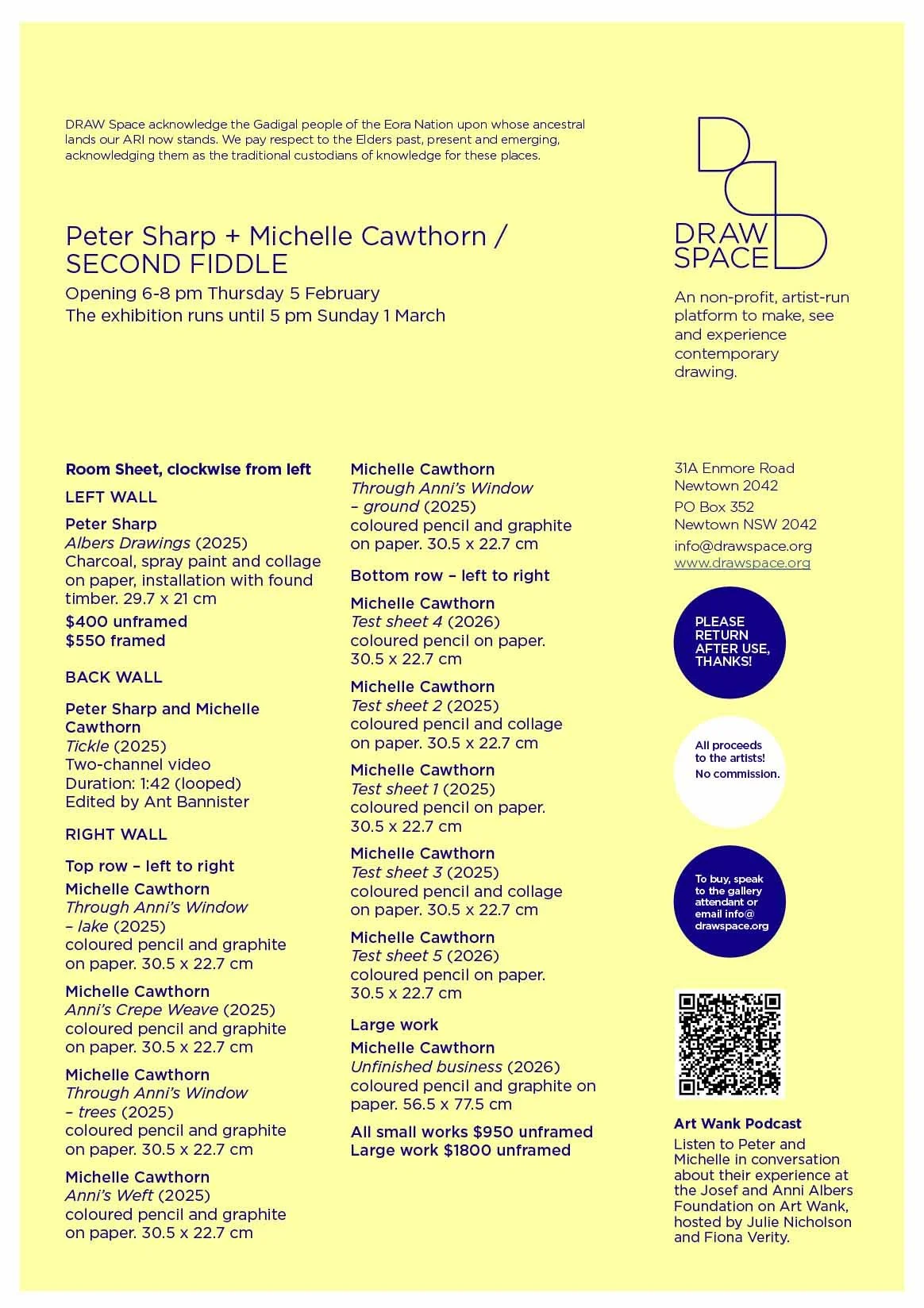 In February 2026, DRAW Space is delighted to present Peter Sharp + Michelle Cawthorn / SECOND FIDDLE