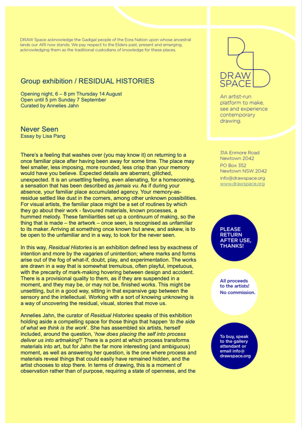 Click here to download a copy of the exhibition essay, NEVER SEEN by Lisa Pang.